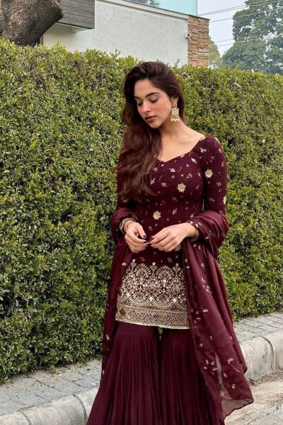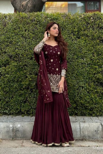 Mirzaa Brown Designer Party Wear Sharara