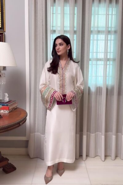 Regal Ivory Embroidered Tunic Dress