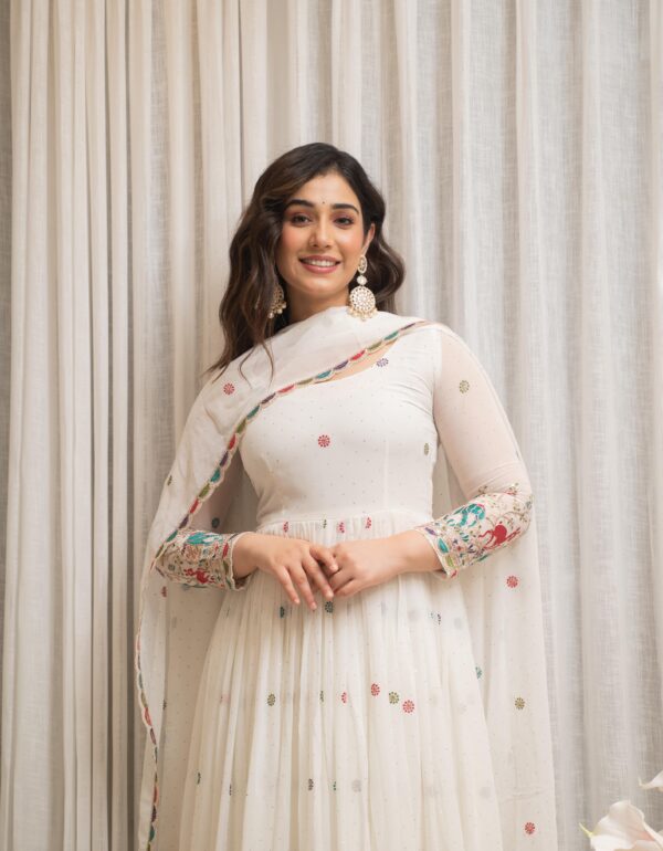 Product Detail : GownGown Fabric : fox georgette With Heavy Embroidery multi work and 3-5mm Sequence Work With Full-Sleeve With