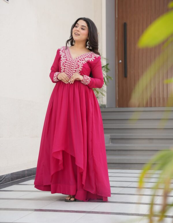 Model Height: 5.5 Model Is Wearing : M Size Gown :- Fabric :- Star Georgette Work : Embroidery Beads Sequins-workLength :-