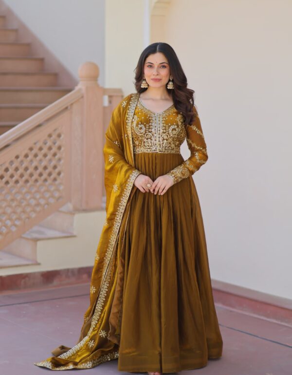 Model Height: 5.5 Model Height- M Size GOWN :- FABRIC & WORK :- Fendy Fabric With Zari & Sequins Embroidered