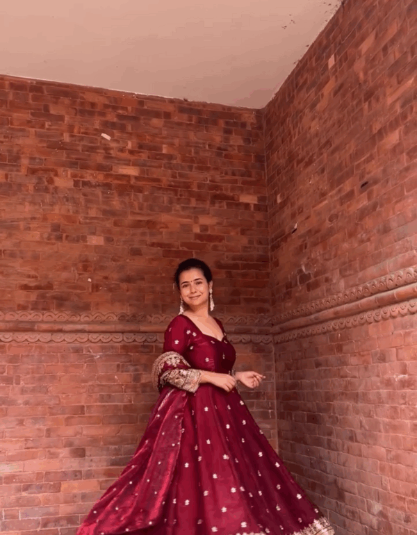 Ruhani Maroon Zari Dori Anarkali Gown Set