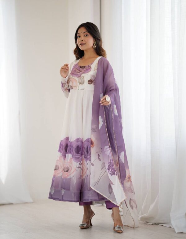 Ruhi Rose Mist Floral Printed Anarkali Gown