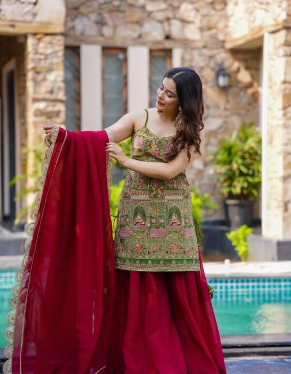 Regal Emerald Sharara Ensemble With Luxe Embroidery