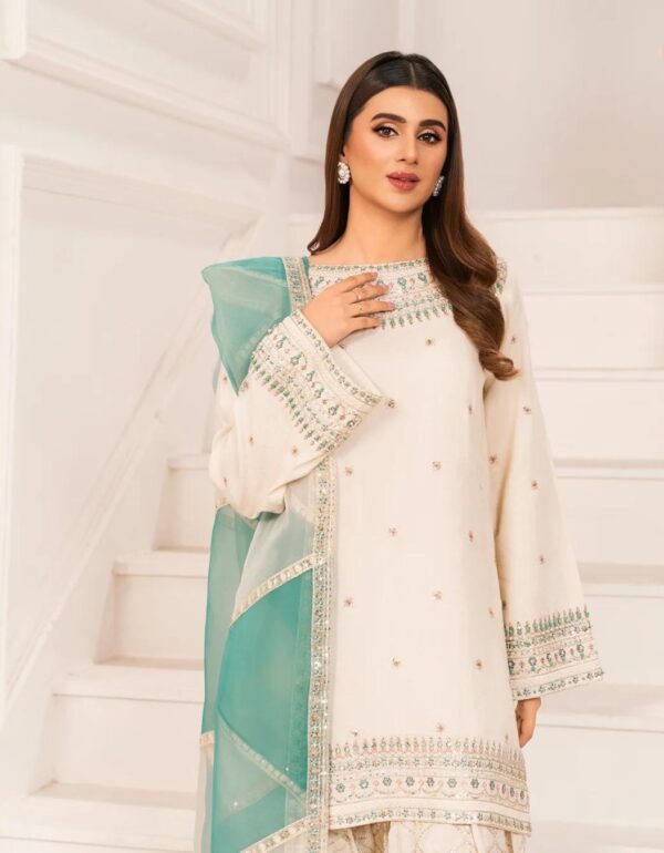 • Dupatta: Sheer organza with delicate scalloped embroidery
