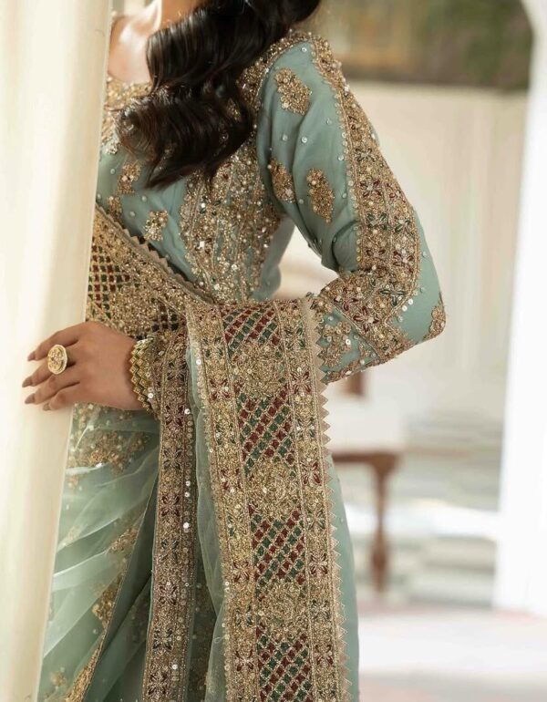 Fabric: Premium Organza Silk with Intricate Golden Thread Embroidery