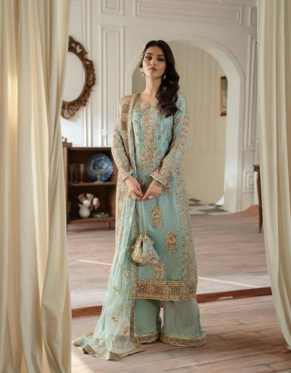 Fabric: Pure Natural Crepe Silk with Heavy Embroidered Hemline