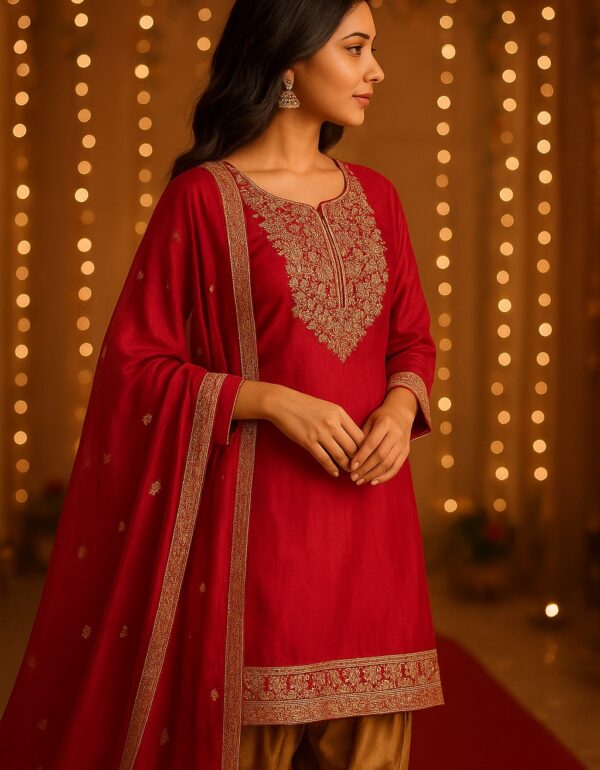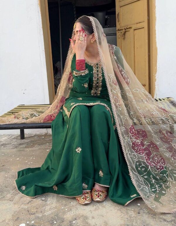 - Embellishments: Intricate embroidery & lace-trimmed dupatta