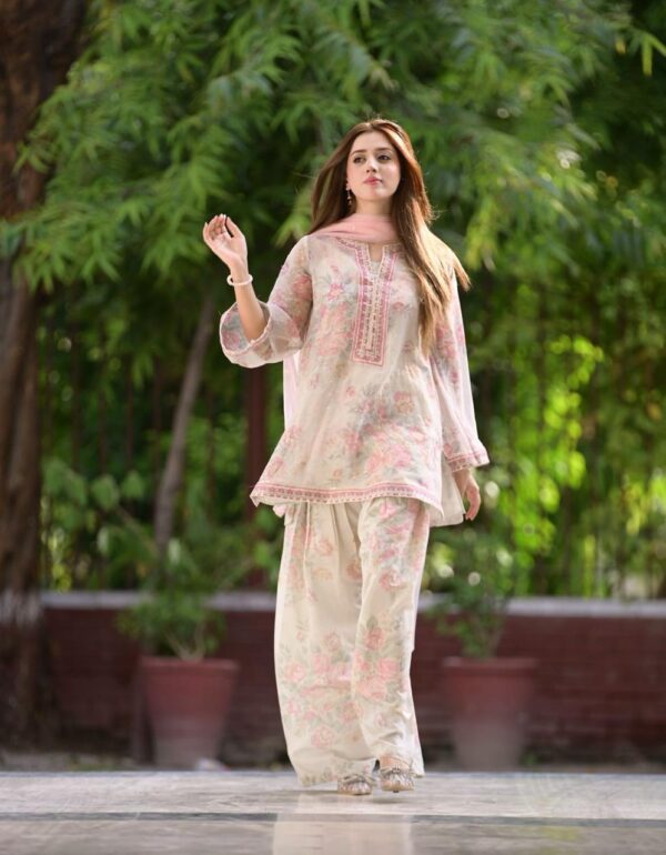 Blush Bloom Embroidered Organza Kurta Plazzo Set