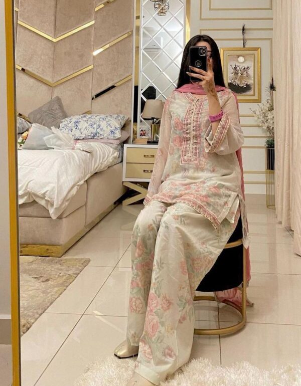 - Work: Attractive embroidery sequence work with beautiful digital print (both sides)