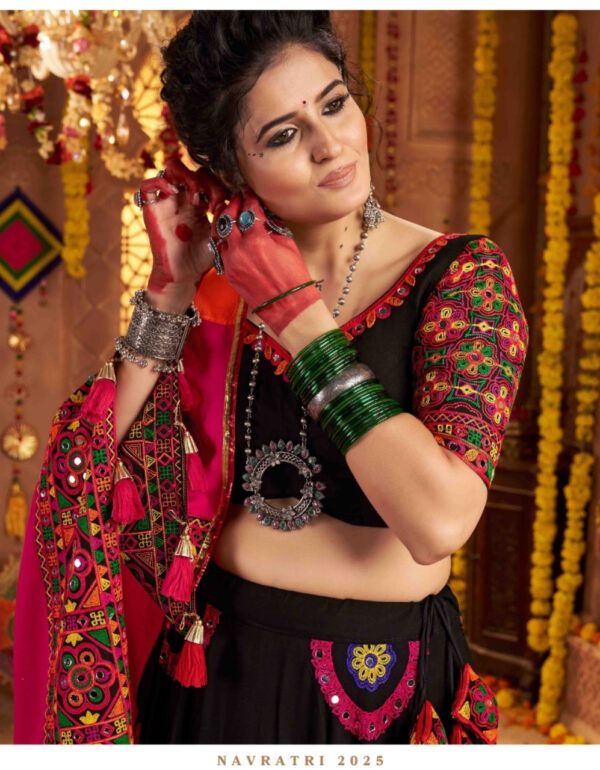 Black Navratri Chaniya Choli with Multicolor Mirror Work