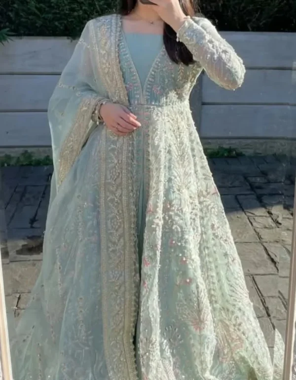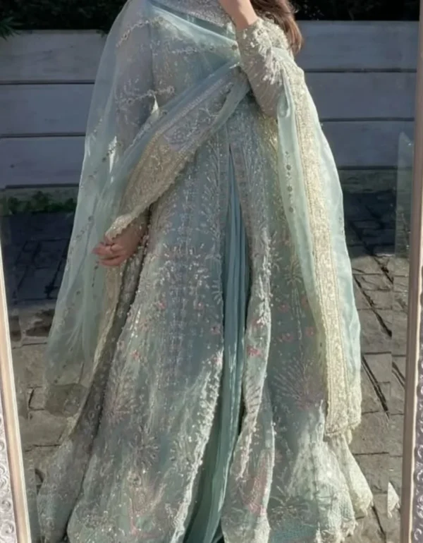 - Work: Heavy embroidered sequence work with real mirror handwork