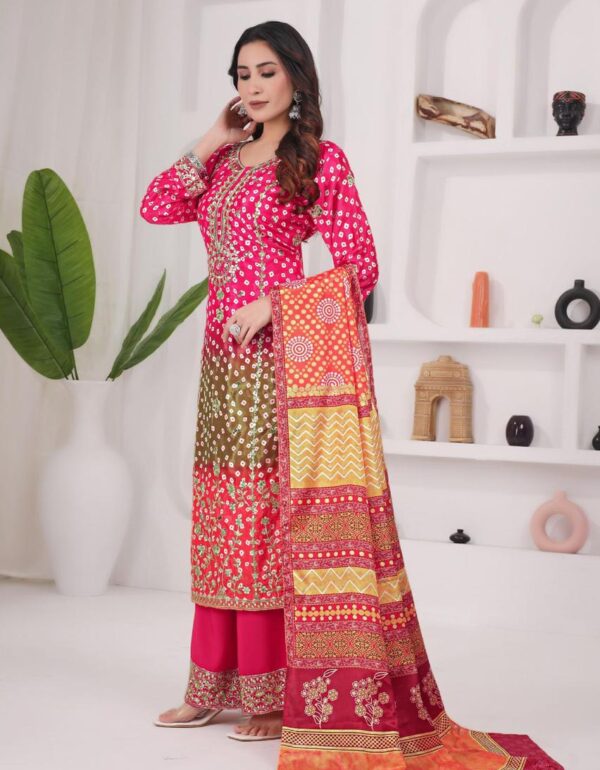 Bandhani Magic Festive Chinon Silk Suit Set