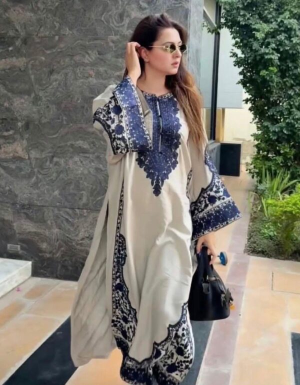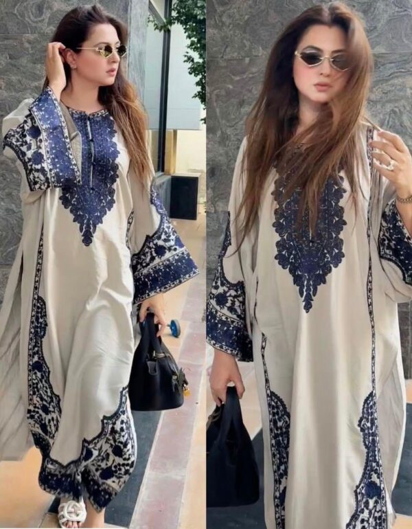 Elegant Off-White & Navy Blue Embroidered Suit Set