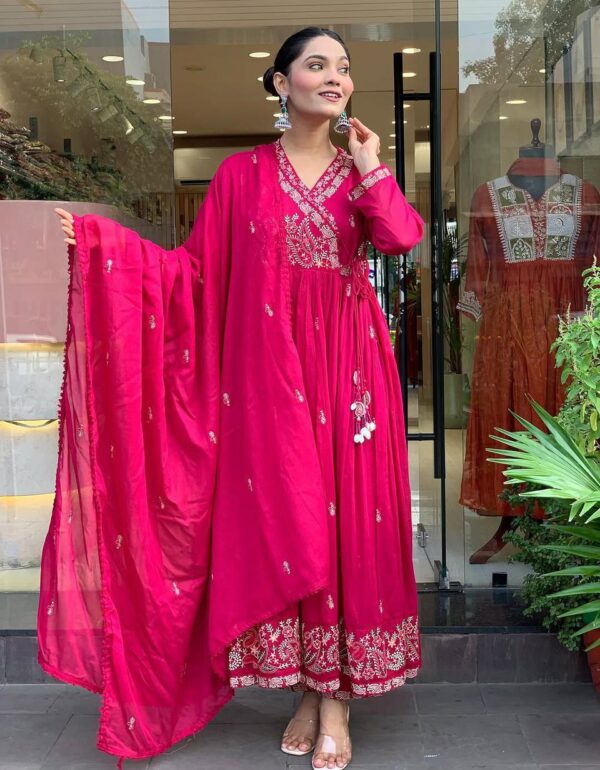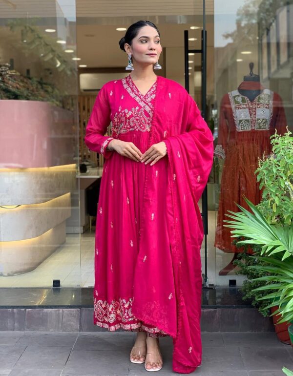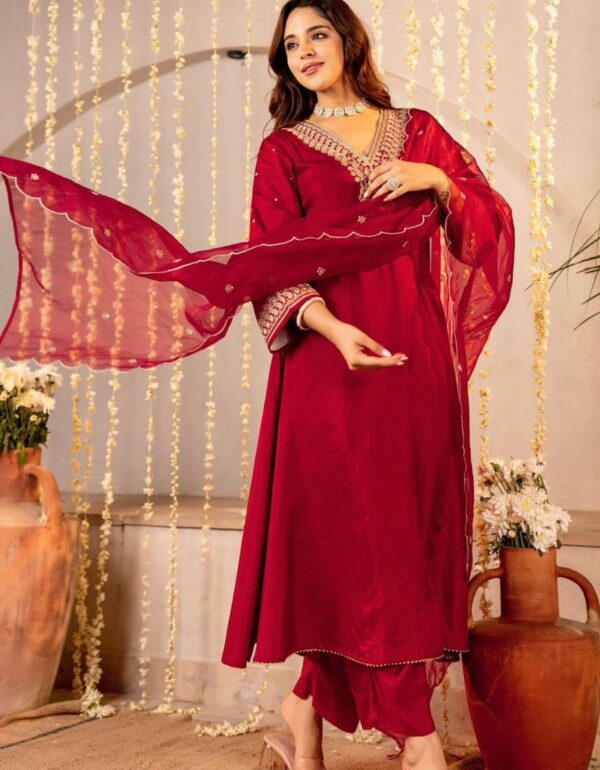 Crimson Elegance Embroidered Anarkali Set – Festive Edition