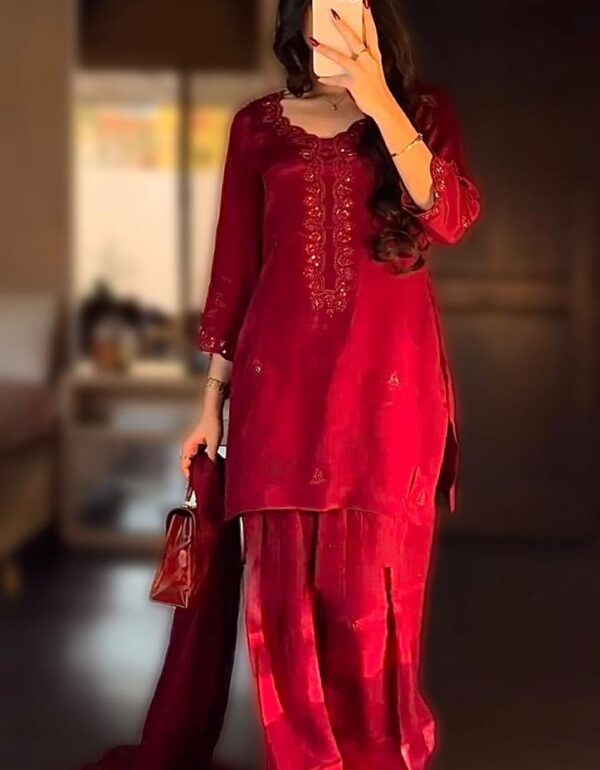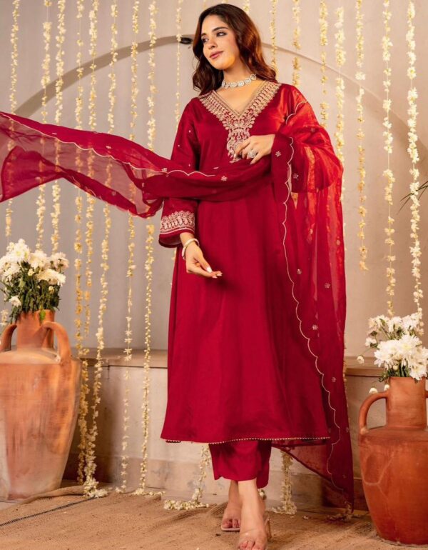 Elegant Red Embroidered Kurta Set