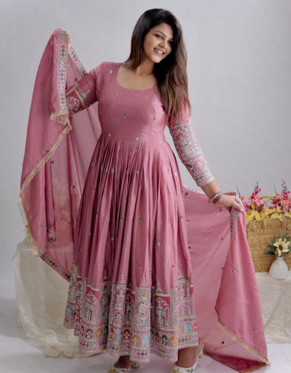 Dusty Pink Embroidered Anarkali Suit with Dupatta