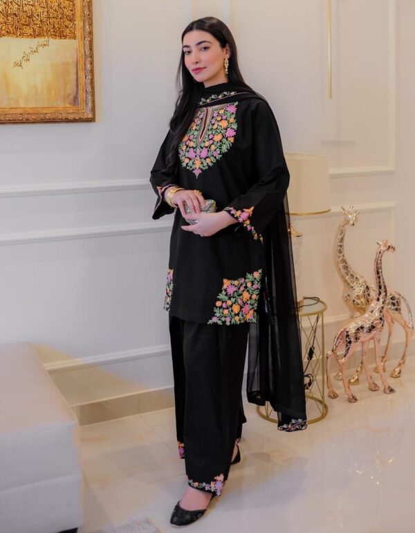 Elegant Black Floral Embroidered Suit Set