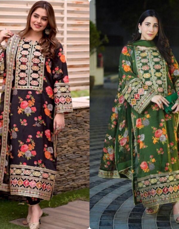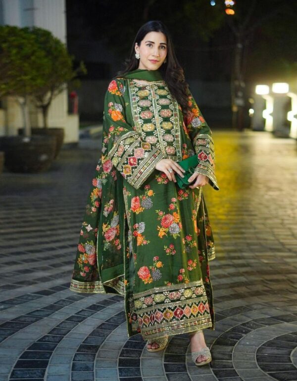 Dupatta Fabric: Heavy Chinon Silk with digital print and embroidered 5 mm sequin work