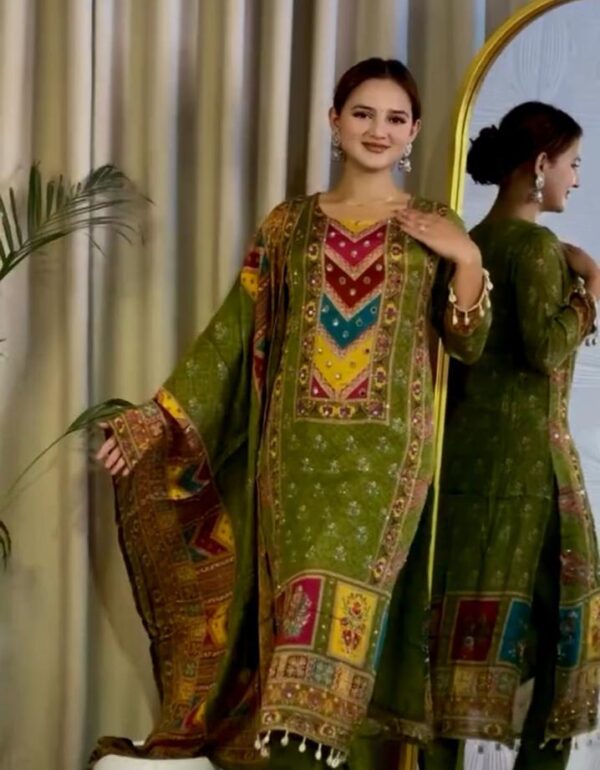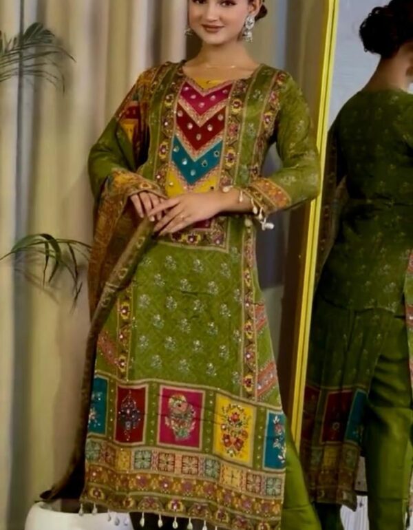 Green Multi-Color Embroidered Printed Suit with Dupatta