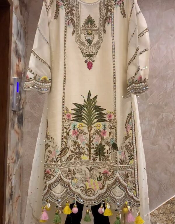 - Fabric: Heavy Chinon Silk with Embroidery Work
