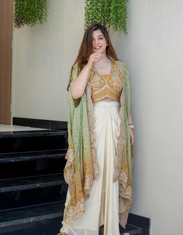 • Beautiful premium blooming georgette fabric kaftan cord 3-piece set (Kaftan, Bustier, and Plazo)