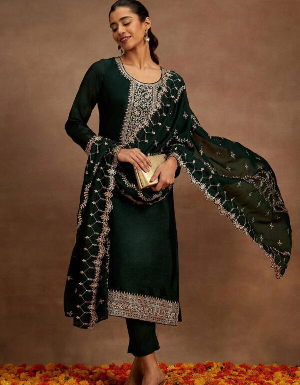 • Suit Fabric: Pure Heavy 9000 Velvet with Heavy Embroidery Coding Sequence Work and Full Embroidery Sleeves