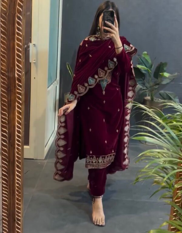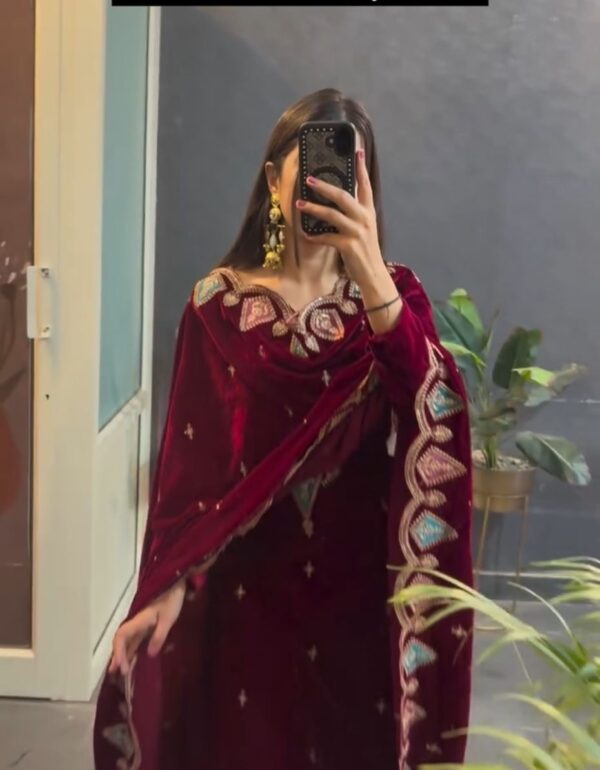• Dupatta Fabric: Heavy Viscose Velvet with Heavy Embroidery Work and Border Cutting Work