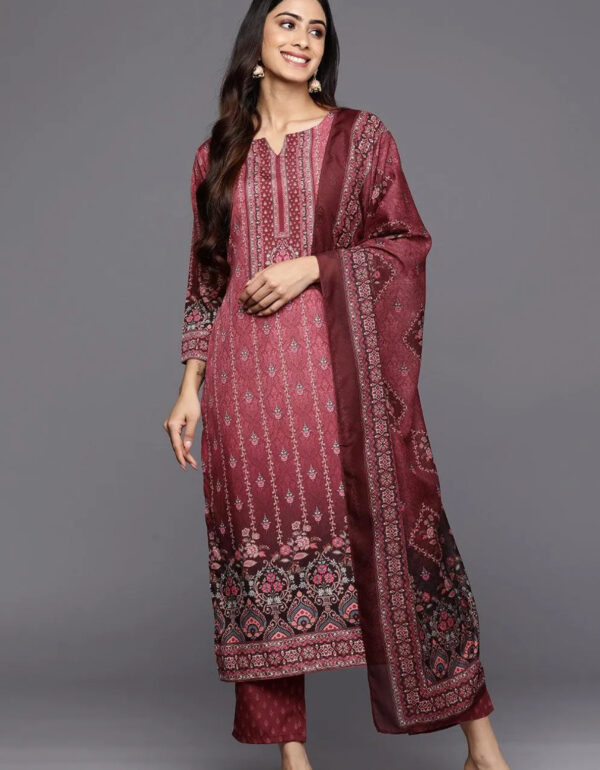 • Dupatta: Soft printed dupatta with wide contrast borders and ethnic motifs