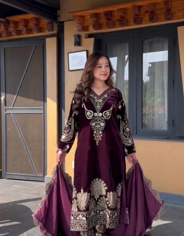 • Top Fabric: Heavy Viscose Velvet with Heavy Embroidery Work