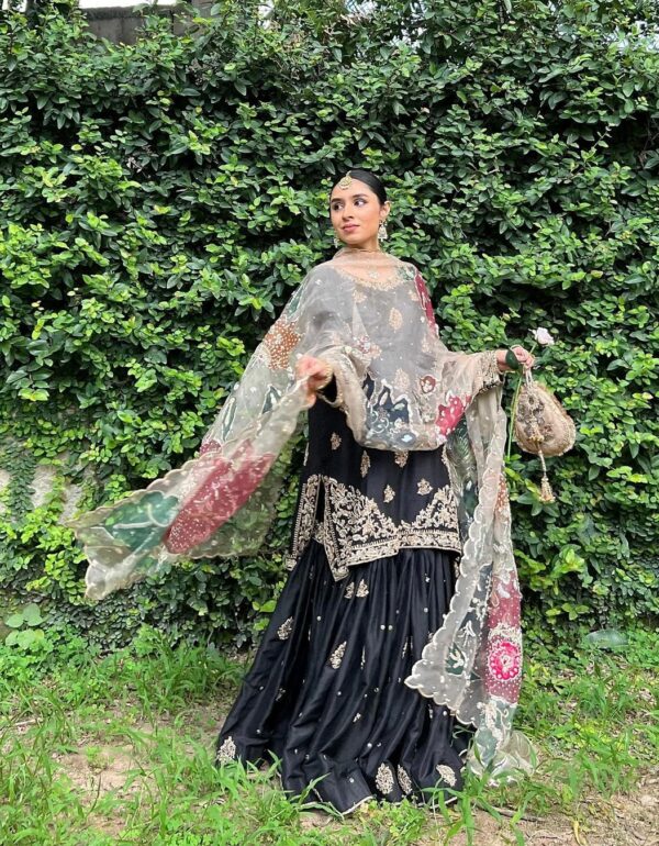 Regal Midnight Gold Sharara & Handcrafted Festive Dupatta