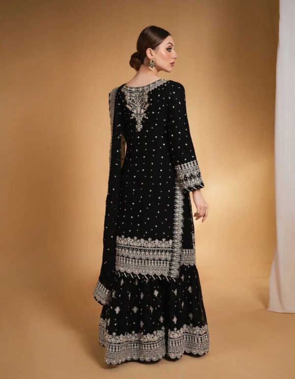 • Sharara Palazzo: Heavy Faux Georgette with 5mm Embroidery Sequence, Fully Flared
