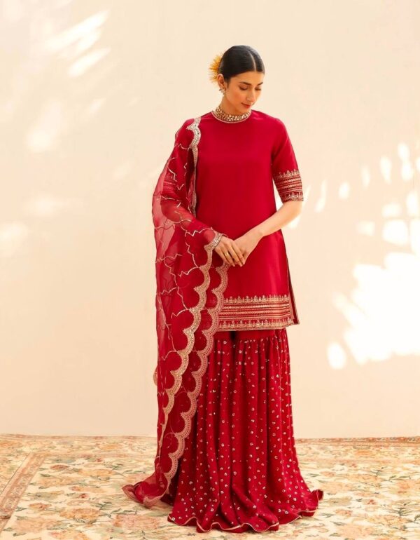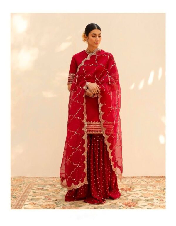 • Dupatta: Embroidered organza with traditional border detailing