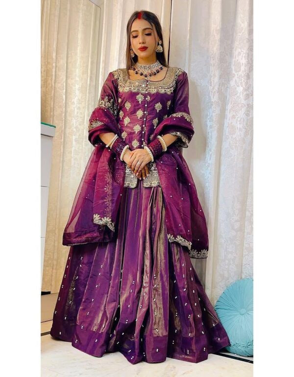 Regal Plum Luxe Silk Embroidered Festive Lehenga
