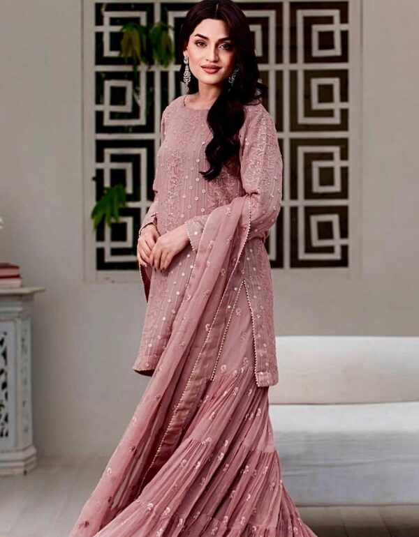 • Fabric: Heavy Premium Georgette with heavy embroidery 3mm sequence work and sleeves.