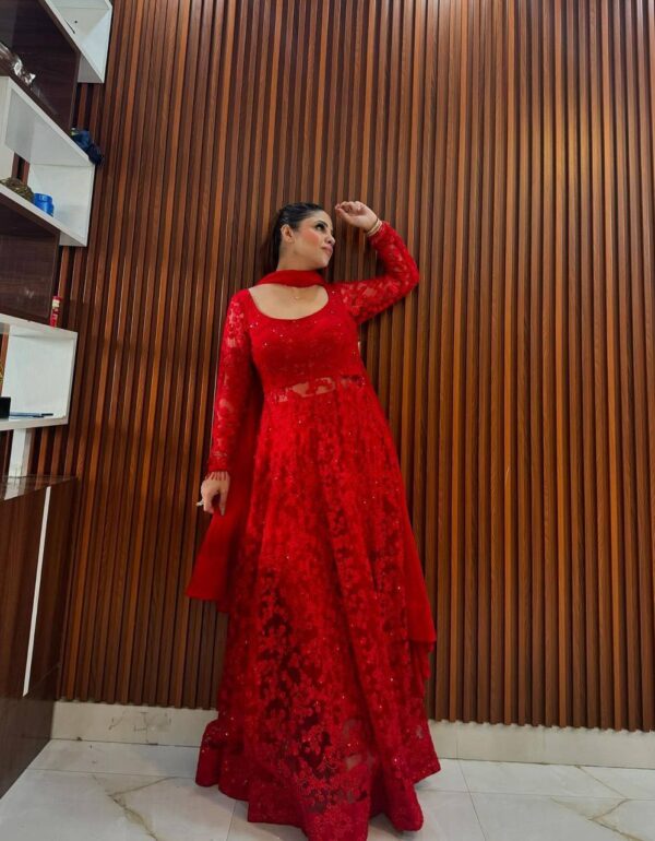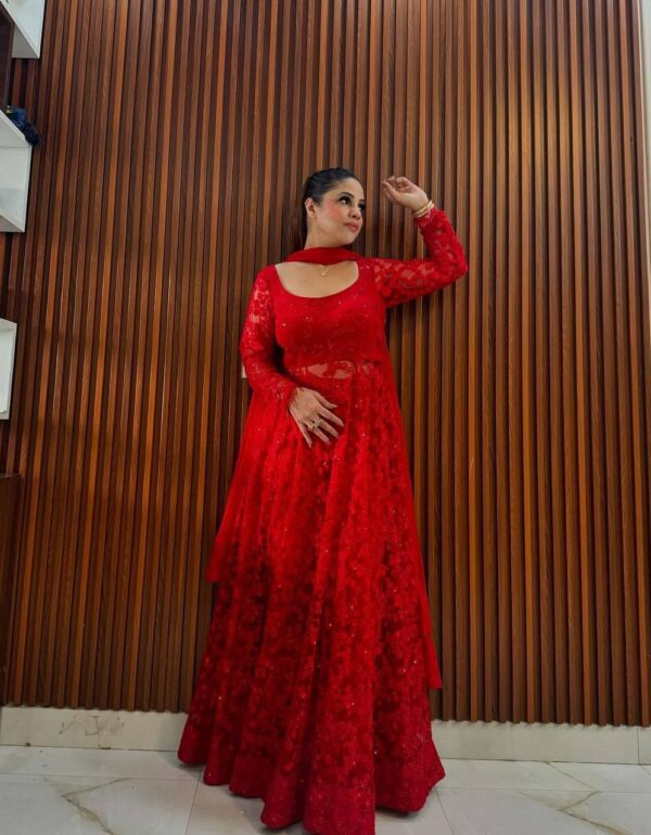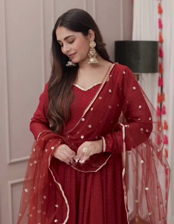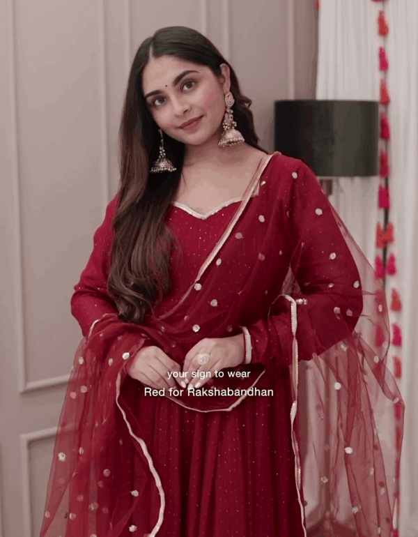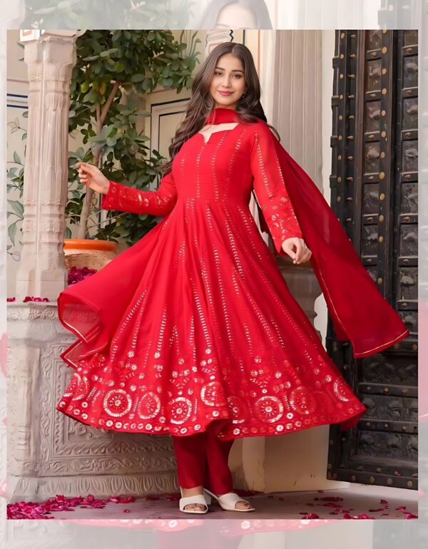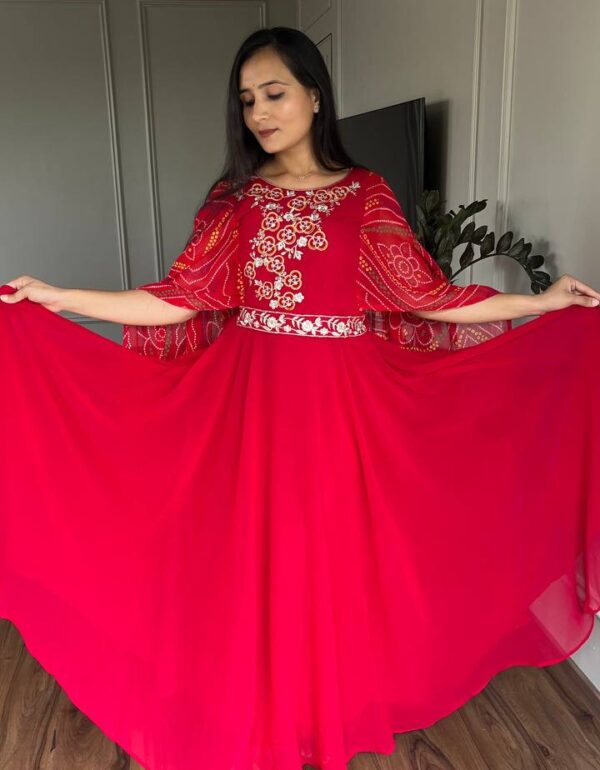 • Anarkali Gown: Pure georgette Anarkali gown with a voluminous flair
