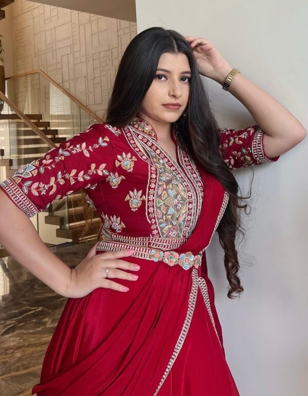 Care Instructions: Dry clean only to maintain the fabric’s sheen and embroidery work.