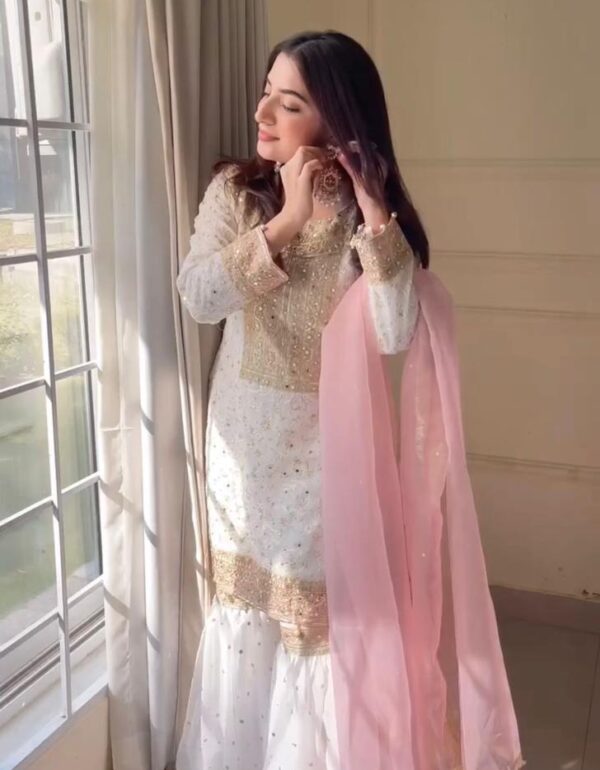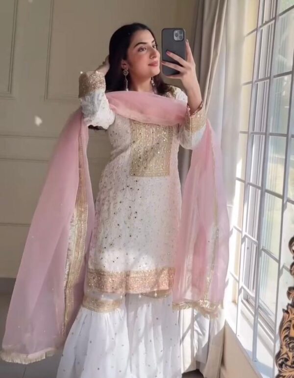 Luxe White Sharara Ensemble with Blush Pink Elegance