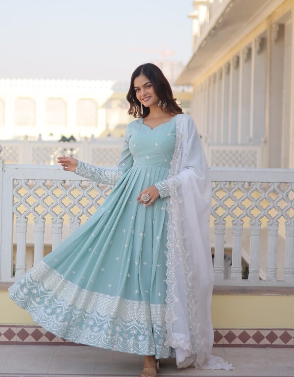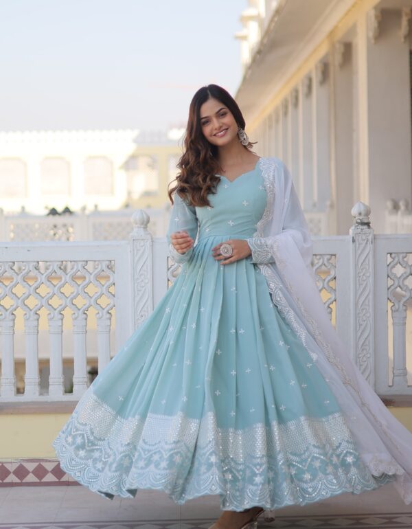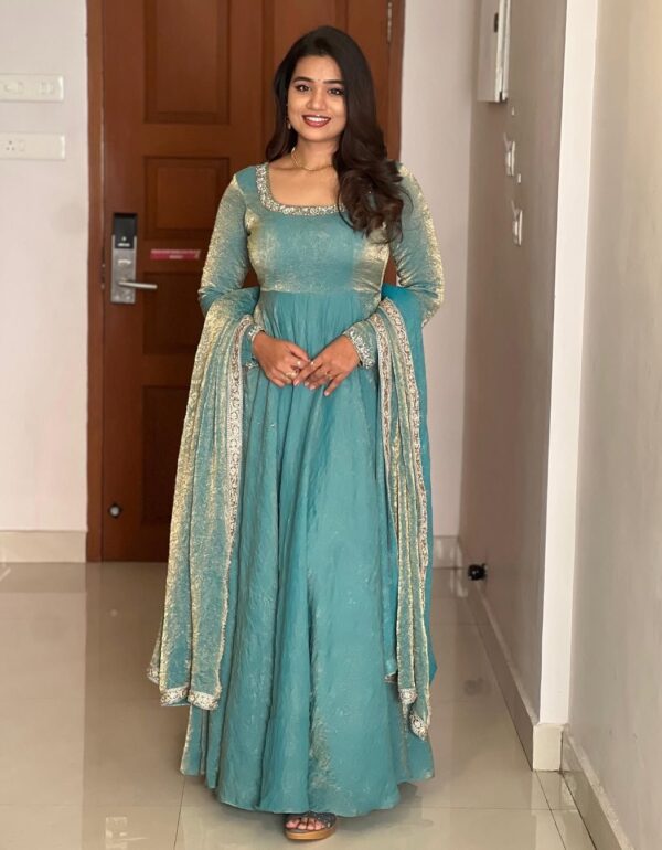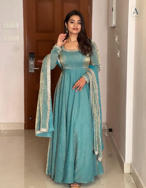 Regal Azure Anarkali Gown With Luxe Dupatta