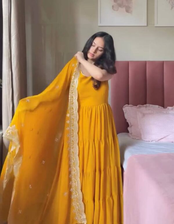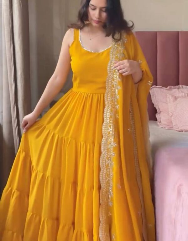 Gown ka design bohot hi classy hai, aur fitting bhi ekdum perfect thi. Sabko bohot pasand aaya!