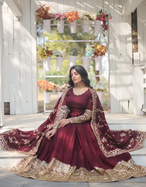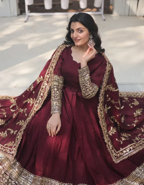 Regal Maroon Luxe Shimmer Gown