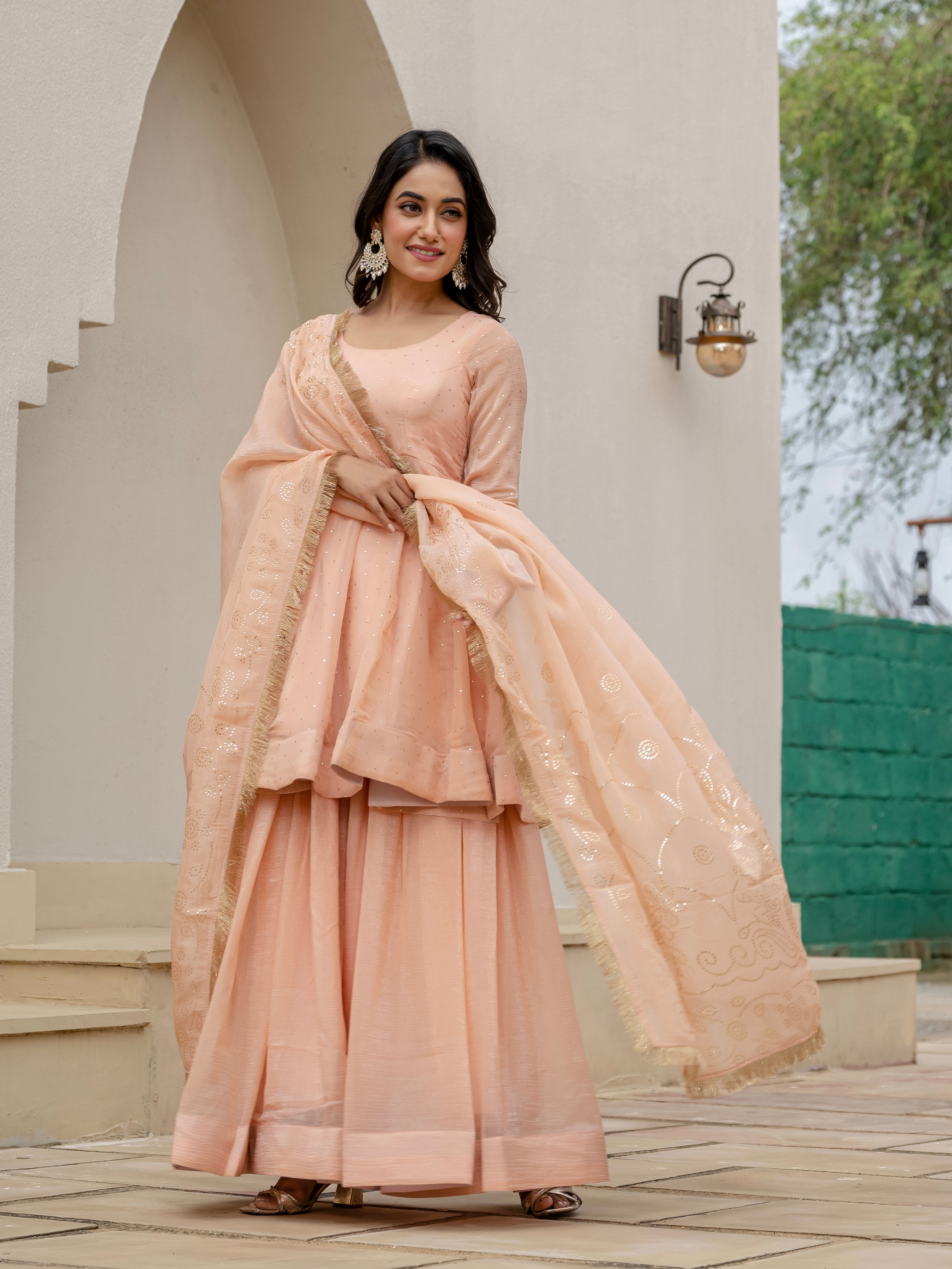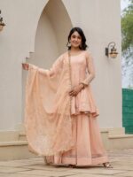 PRODUCT DETAILS: TOP: Febric : GEORGETTE WORK : EMBROIDERY WORK HEIGHT: 37”inches PLAZZO :Febric : CRUSHED GEORGETTE HEIGHT: 40”inches  DUPATTA:Febric :  GEORGETTE EMBROIDERY