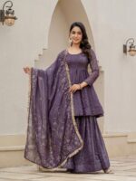 PRODUCT DETAILS: Kurti: Febric : ROMAN SILKWork : SEQUENCE EMBROIDERY WORK FRONT SIDE Height: 35”inches  Sarara: Febric : ROMAN SILKWork :
