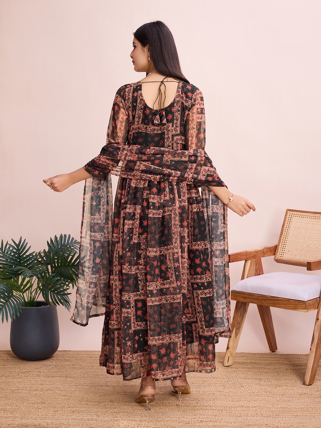 Presenting you are new Georgette glimmer gown will a Monochrome dupatta off for a perfect celebration a must have in the wardrobe now add it to yours