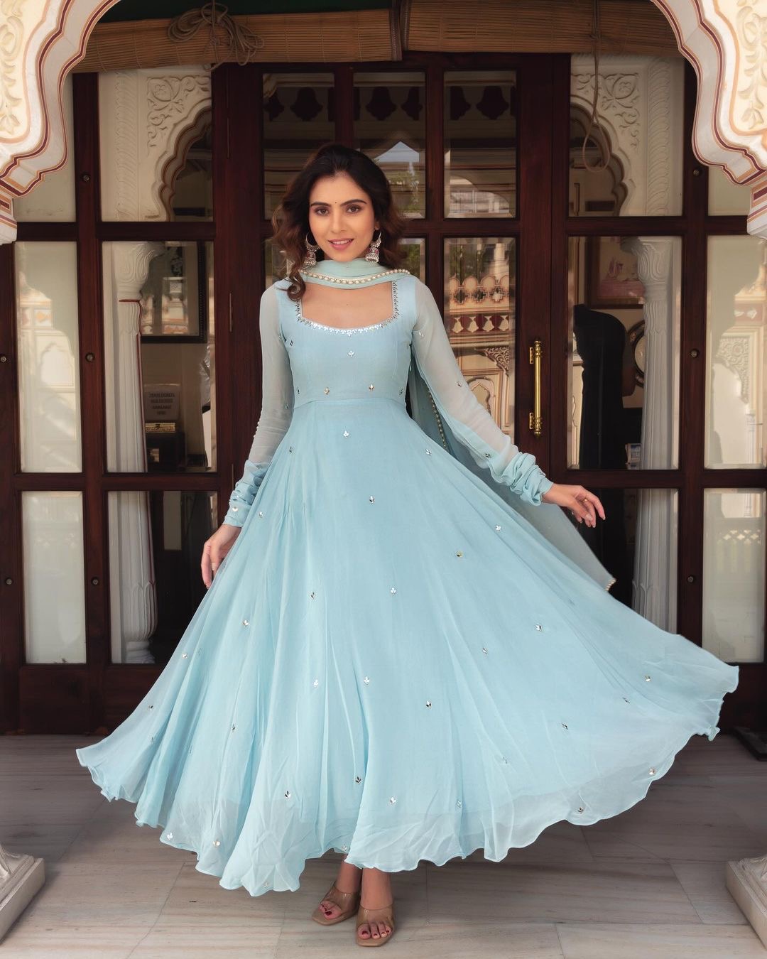 Absolutely loved the Regal Aqua Bloom Anarkali! The georgette fabric is so soft and the silver handwork is stunning. Perfect for festive occasions!