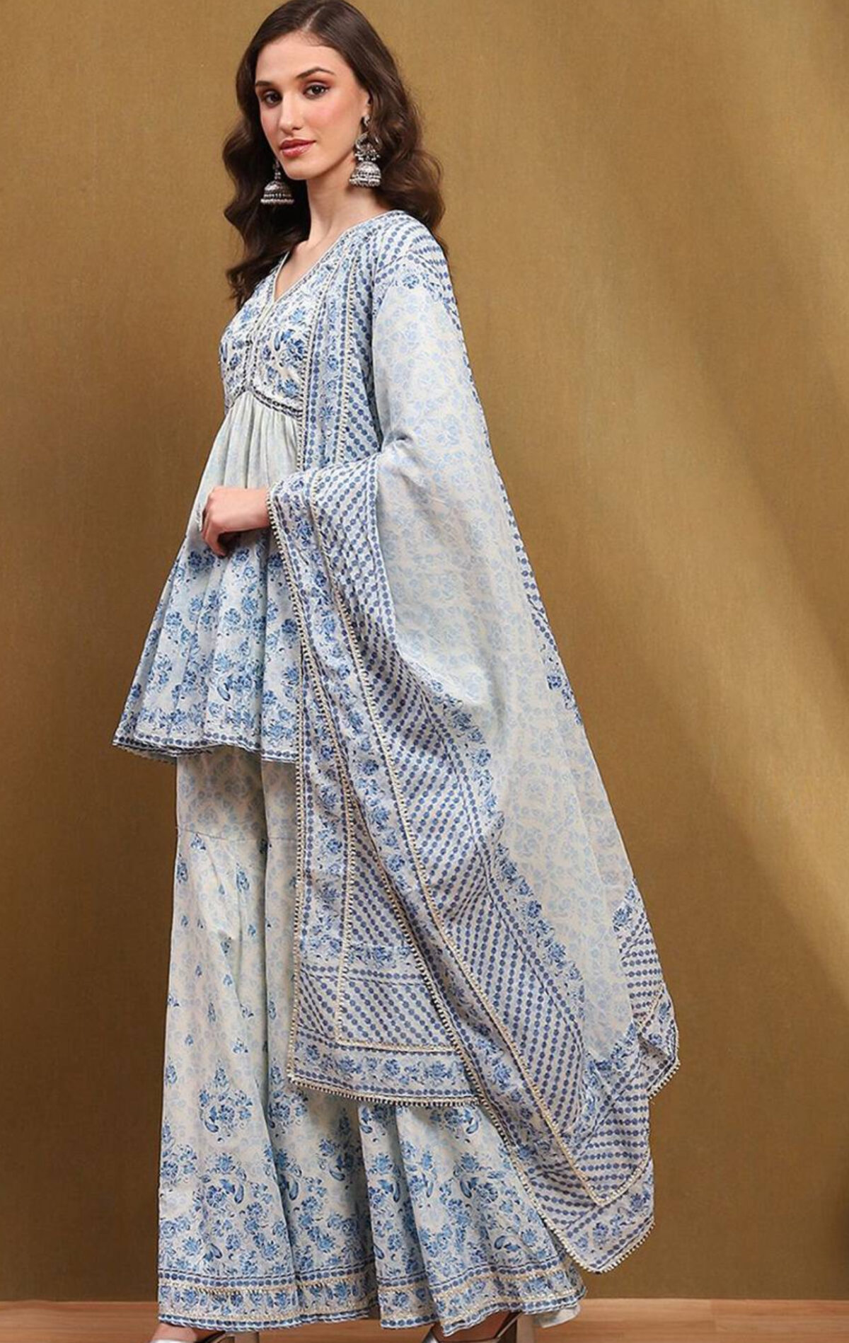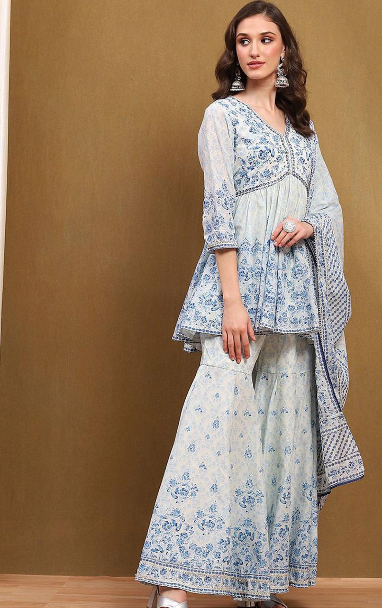5 reviews for Regal Azure Bloom Peplum Kurta Ensemble