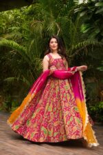 Bandhej Paisley Printed Anarkali with Ombre Dupatta