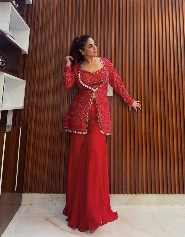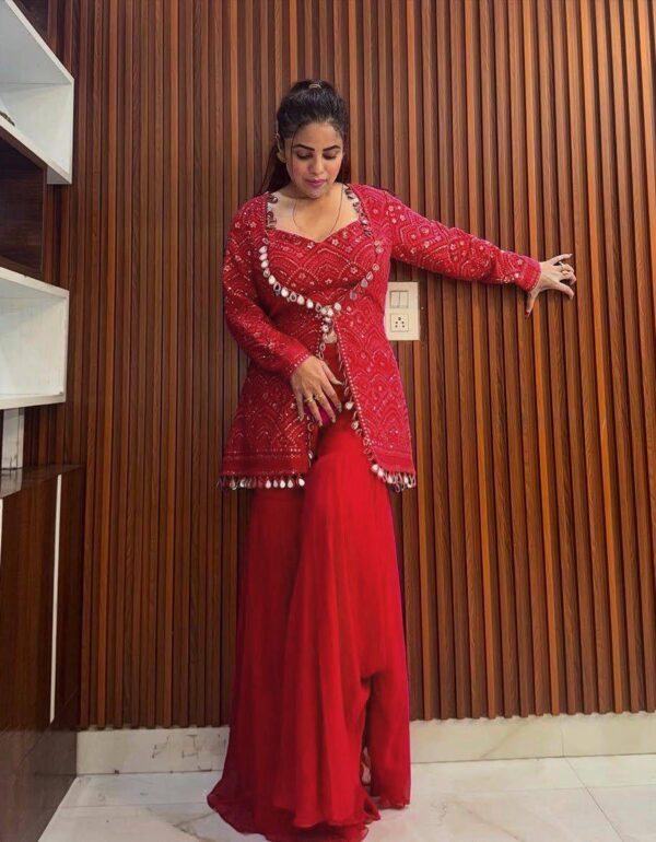 - Work: Thread embroidery, 5mm sequins embroidery, and real mirror work lace on jacket
