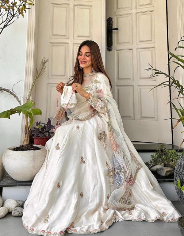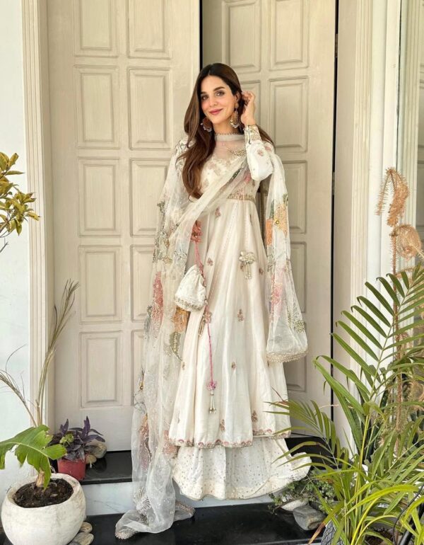 Eliza Elegant White Embroidered Anarkali Dress with Dupatta