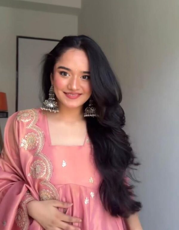 Rose Blush Embroidered Anarkali Set – Elegant Party Ensemble